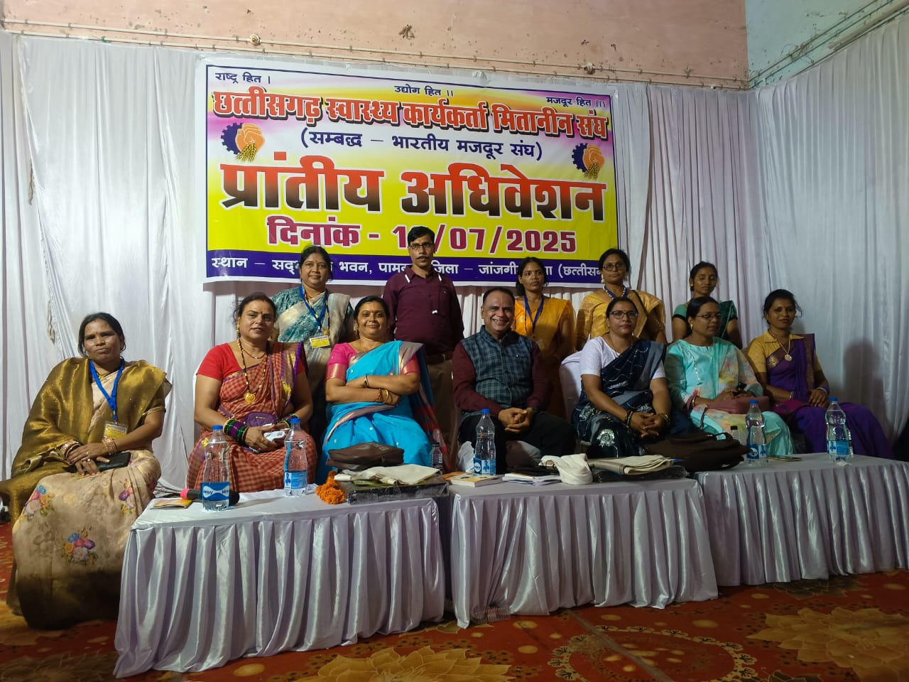 आशा कर्मियों का छत्तीसगढ़ प्रदेश अधिवेशन पामगढ़ में सम्पन्न। आशा कर्मियों ने शासन से वेतन, सामाजिक सुरक्षा सहित अन्य सुविधायें की मांग की