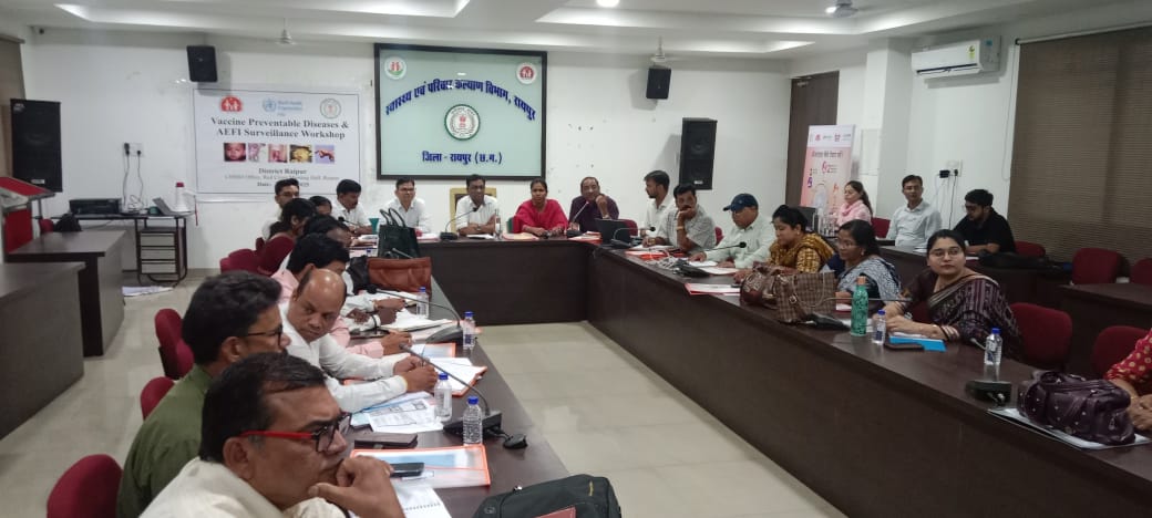 रायपुर, 21 जुलाई 2025/सीएमएचओ सभाकक्ष में आज कलेक्टर डॉ गौरव सिंह के निर्देशानुसार सर्विलेंस मेडिकल ऑफिसर (SMO), डब्लू.एच.ओ रायपुर डॉ. नितीन पाटिल के द्वारा एक दिवसीय VPD सर्विलेंस कार्यशाला का आयोजन किया गया। प्रशिक्षण में खंड/शहरी चिकित्सा अधिकारी, शहरी/विकासखंड नोडल अधिकारी, बीपीएम, सी पी एम, बीईटीओ, सुपर वाइजर एवं जिला कार्यालय से जिला सांख्यिकी अधिकारी दिलीप बंजारे उपस्थित रहे।वैक्सीन प्रिवेंशन डिजीज अंतर्गत SMO के द्वारा, मिजिल्स रुबेला सर्विलेंस,AFP, गलघोंटू, कुकुर खांसी, काली खासी, नवजात टेटनस, धनुषटंकार इत्यादि बीमारियों पर विस्तार से चर्चा की गई एवं सर्विलेंस के महत्व को समझाया गया। साथ ही टीकाकरण के बाद होने वाली प्रतिकूल प्रभाव के बारे में जानकारी देते हुए एनाफिलेक्सिस और इसके किट के बारे में समझाया गया।