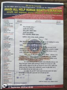 अनादि सर्व मानव अधिकार सहायता फेडरेशन ने विश्व हिंदू परिषद, बजरंग दल पर वैधानिक कार्यवाही करने जिला कलेक्टर, पुलिस अधीक्षक को सौंपा ज्ञापन।