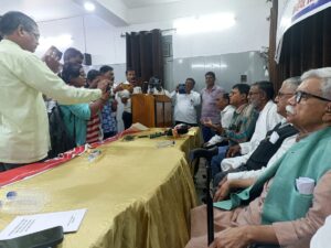 लखनऊ 27 सितंबर 2025 । सामाजिक न्याय मोर्चा उत्तर प्रदेश द्वारा 27 सितंबर को लखनऊ प्रेस क्लब में संघी मनुवादी फासीवाद,धार्मिक कट्टरपंथ और अंधश्रद्धा विरोधी जन सम्मेलन का सफल आयोजन किया गया । सम्मेलन में शिरकत कर रहे प्रतिनिधियों द्वारा सर्वसम्मति से लखनऊ घोषणापत्र पारित किया गया।एडवोकेट रमाशंकर भीम की पहल से एडवोकेट बसंत लाल के द्वारा लखनऊ घोषणापत्र को प्रस्ताव के रूप में रखा गया था।जिसके अनुसार संघी मनुवादी फासीवादी ताकतों द्वारा नफ़रत और विभाजन के बल पर बनाए जा रहे हिंदुराष्ट्र का प्रतिरोध ,क्रूर मनुस्मृति आधारित निर्मम जाति व्यवस्था का उन्मूलन तथा दलितों/ उत्पीड़ितों महिलाओं ,आदिवासियों, गरीब मेहनतकश जनता और अल्पसंख्यकों पर हो रहे दमन के खिलाफ उत्तर प्रदेश की जनता को संगठित होकर संघी मनुवादी फासीवाद के खिलाफ आवाज़ बुलंद करने की अपील की गई।जन कन्वेंशन की अध्यक्षता प्रख्यात शिक्षाविद एवं मानवाधिकार कार्यकर्ता प्रोफेसर रमेश दीक्षित ने की।अध्यक्षमंडल में एडवोकेट रमाशंकर भीम,भाकपा माले रेड स्टार के पोलित ब्यूरो सदस्य कॉमरेड तुहिन,एडवोकेट राम कृपाल, किसान नेता कामरेड धर्मपाल,समाजसेवी आर डी निर्मोही ,अखिल भारतीय क्रांतिकारी महिला संगठन AIRWO की राज्य संयोजक कॉमरेड अंजू,समाजसेवी विश्राम राज पासी शामिल थे।