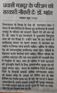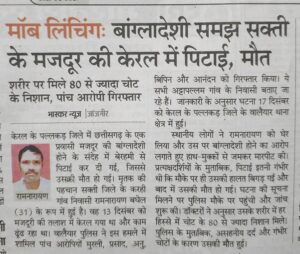 छत्तीसगढ़ के प्रवासी मजदूर की केरल में मॉबलिंचिंग से हुई हत्या। GSS/LSU ने घटना की उच्चस्तरीय जांच की मांग की है।