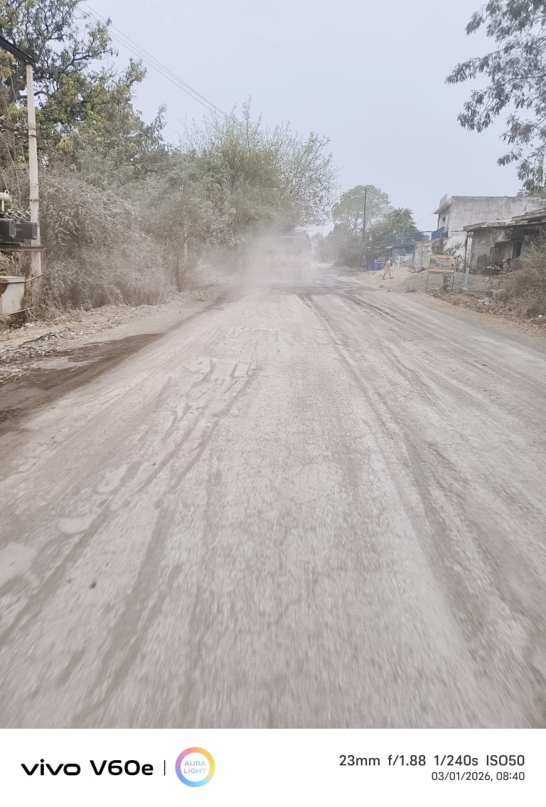 सरसीवा 02 मार्च 2026। सरसीवां से सरायपाली मार्ग में सड़क निर्माण कार्य शुरू कर दिया गया है लेकिन संबंधित ठेकेदार सड़क पर पानी का छिड़काव नहीं करने से लोग श्वास संबंधी बीमारियों से जूझ रहें हैं। धूल के गुब्बार से लोगों की सेहत के लिए खतरा बन रहा है जहां लोग उड़ते धूल से हलाकान है। धूल से लोगों की सेहत पर गहरा असर पड़ रहा है लोगो को सांस लेने में परेशानी हो रही है। मुख्य मार्ग के रहवासियों का जीना दूभर हो गया है लोगों ने विभाग प्रमुख और संबंधित ठेकेदार से धूल से निजात पाने तत्काल दिन में 3 बार पानी छिड़काव करने की मांग की है। अंचल के लोगों ने लोक निर्माण विभाग के इस कृत्य से नाराजगी जताई है।