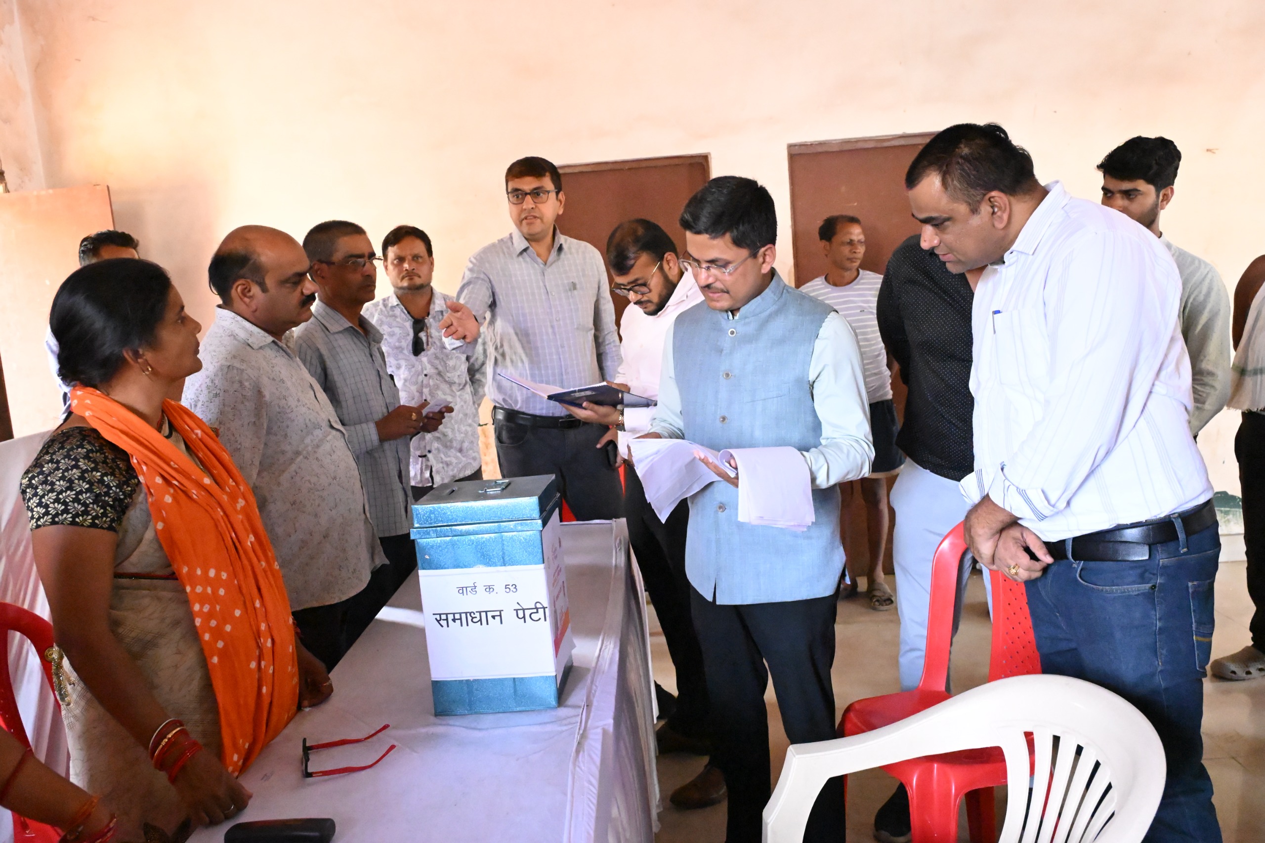 कलेक्टर ने सबसे पहले नगर निगम के वार्ड क्रमांक 53 के लिए प्रभात चौक के सामुदायिक भवन में आवेदन लेने की प्रक्रिया का जायजा लिया। बताया गया कि यहां आज 27 आवेदन मिले हैं। कलेक्टर ने सुशासन तिहार का व्यापक प्रचार-प्रसार करने के निर्देश दिए। उन्होंने लगातार मुनादी कराने कहा। इसके साथ ही कलेक्टर ने वार्ड क्रमांक 59 और ग्राम पंचायत सेंदरी में भी लगाए गए शिविर का जायजा लिया। उन्होंने अधिकारियों से कहा कि लोगों को आवेदन देने में किसी प्रकार की दिक्कत न हो इसका विशेष ध्यान रखा जाए। किसी भी व्यक्ति को आवेदन देने से मना या रोका न जाए। कलेक्टर ने आवेदन देने आए लोगों से चर्चा कर जानकारी ली। उन्होंने सभी से अपील की कि मांग और समस्याओं से संबंधित आवेदन बेझिझक दे।